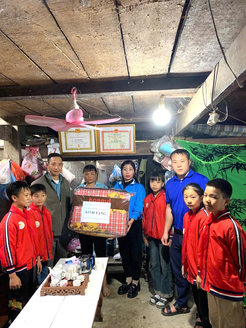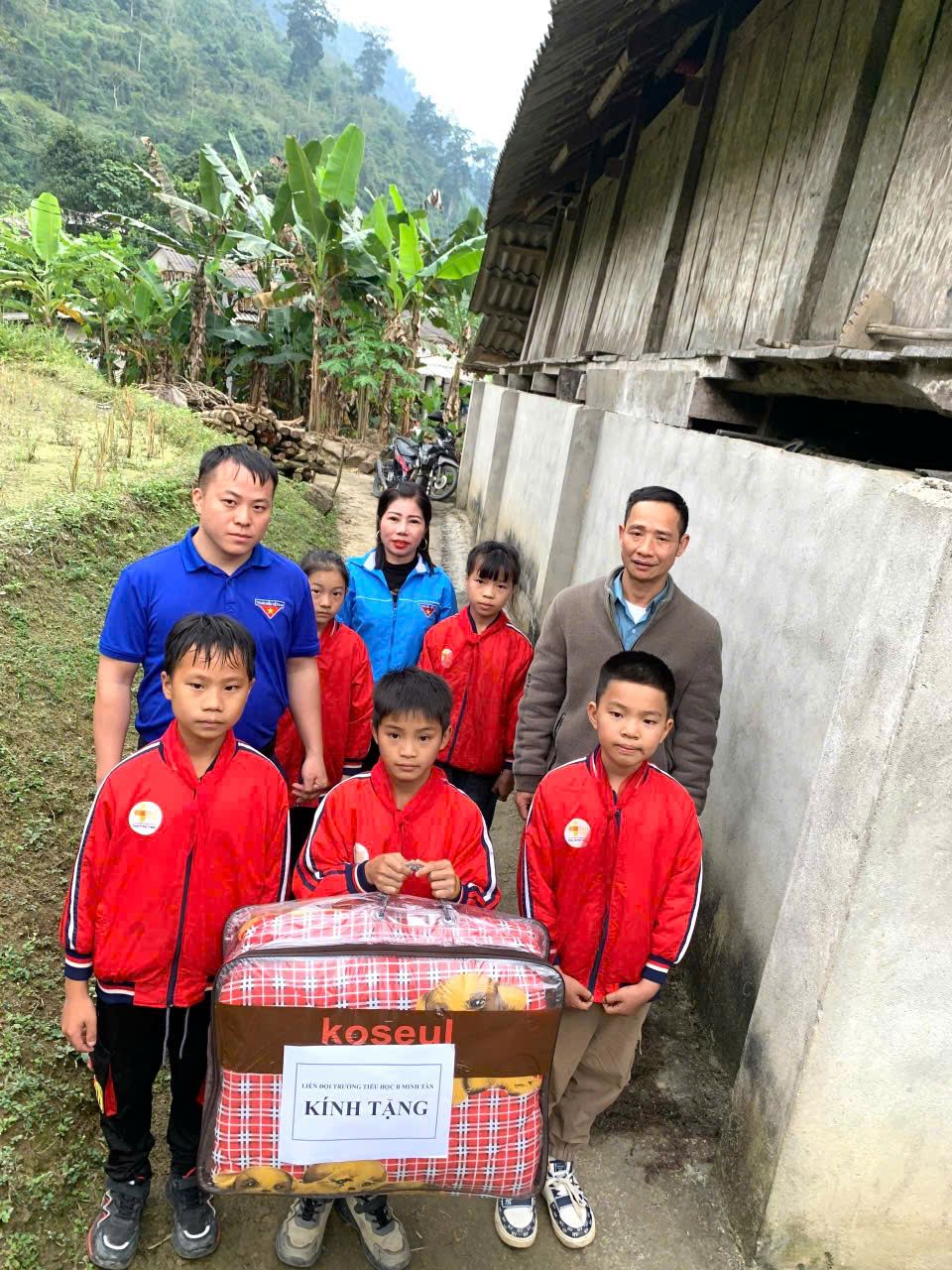 Tham gia cùng Liên đội có Anh: Dương Việt Hùng – Bí thư Đoàn xã Minh Tân và cô: Ngô Thị Hồng Minh – Tổng phụ trách Đội của nhà trường. Do bác Lộc Đình Hâm đang ốm và phải điều trị tại bệnh viện, đoàn công tác đã đến gia đình để thăm hỏi, gửi lời chúc sức khỏe và trao quà. Đại diện gia đình gồm cháu dâu và bác Vương Văn Cường – Bí thư Chi bộ thôn Tân Sơn đã thay mặt bác tiếp nhận phần quà cùng tình cảm tri ân của Liên đội.