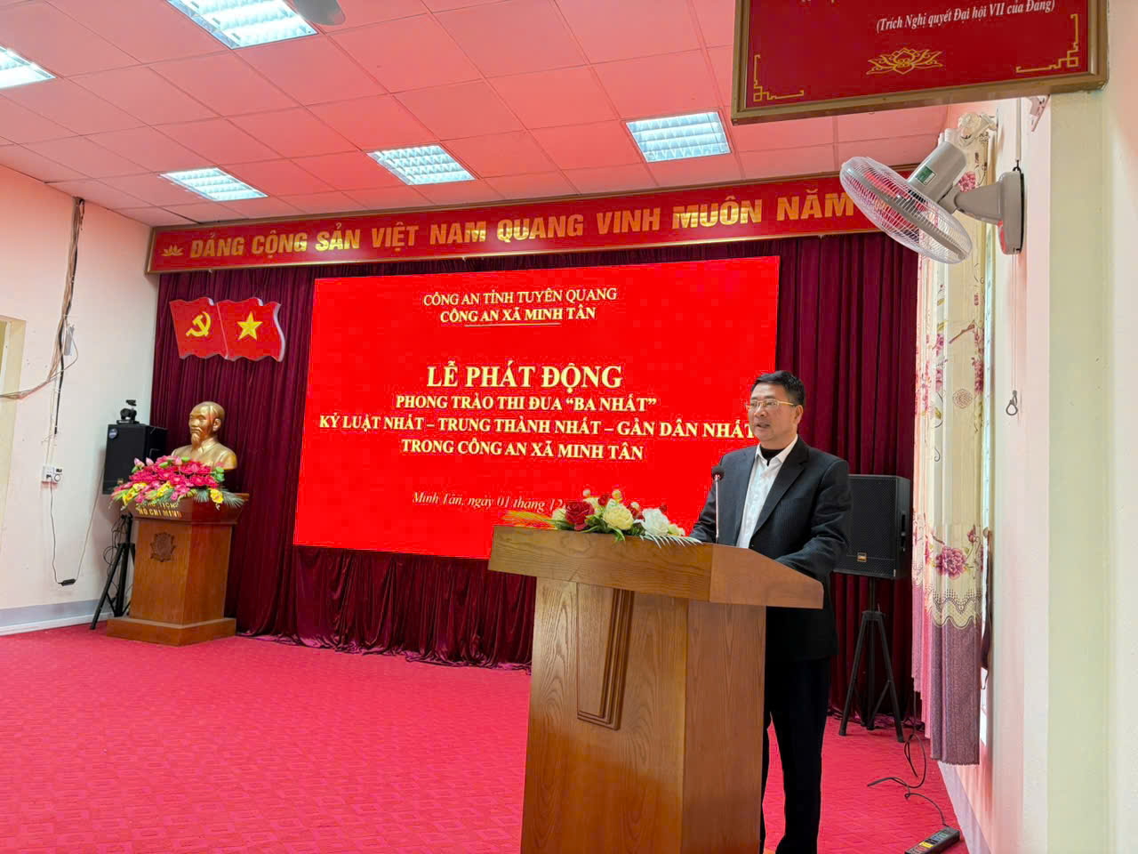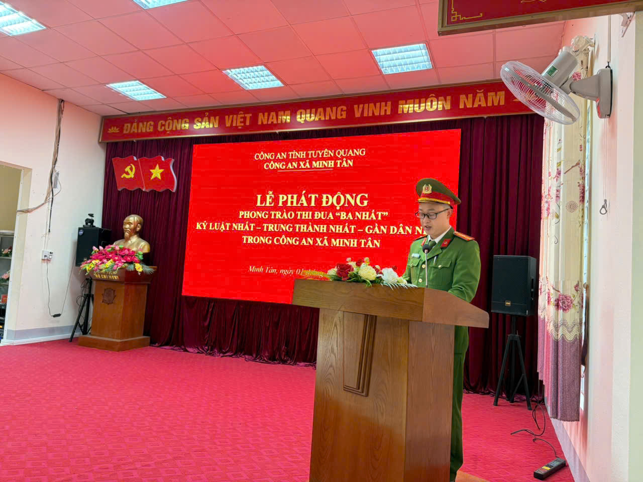 Tại Lễ phát động, Chỉ huy Công an xã đã thông qua kế hoạch triển khai thực hiện và nội dung cốt lõi của phong trào thi đua “Ba nhất” gắn với duy trì triển khai thực hiện tốt “Sáu điều Bác Hồ dạy Công an nhân dân”, “Năm lời thề, mười điều kỷ luật trong Công an nhân dân” góp phần thực hiện thắng lợi Nghị quyết Đại hội chi bộ Công an xã Minh Tân lần thứ I, nhiệm kỳ 2025 – 2030 đồng thời xây dựng lực lượng Công an xã Minh Tân chính quy, tinh nhuệ, hiện đại đáp ứng yêu cầu, nhiệm vụ bảo đảm An ninh trật tự trên địa bàn trong thời gian tới. Công an xã đã quyết định lựa chọn mô hình gắn với thực hiện phong trào thi đua “Ba nhất” trong Công an vì nhân dân thông qua việc mỗi tháng tổ chức 01 chương trình “Gian hàng không đồng gắn với tuyên truyền phổ biến giáo dục pháp luật” tại chợ phiên của xã Minh Tân để góp phần thiết thực lan tỏa tinh thần, hình ảnh đẹp Người chiến sĩ CAND hết lòng, hết sức phụng sự Tổ quốc, phục vụ Nhân dân.