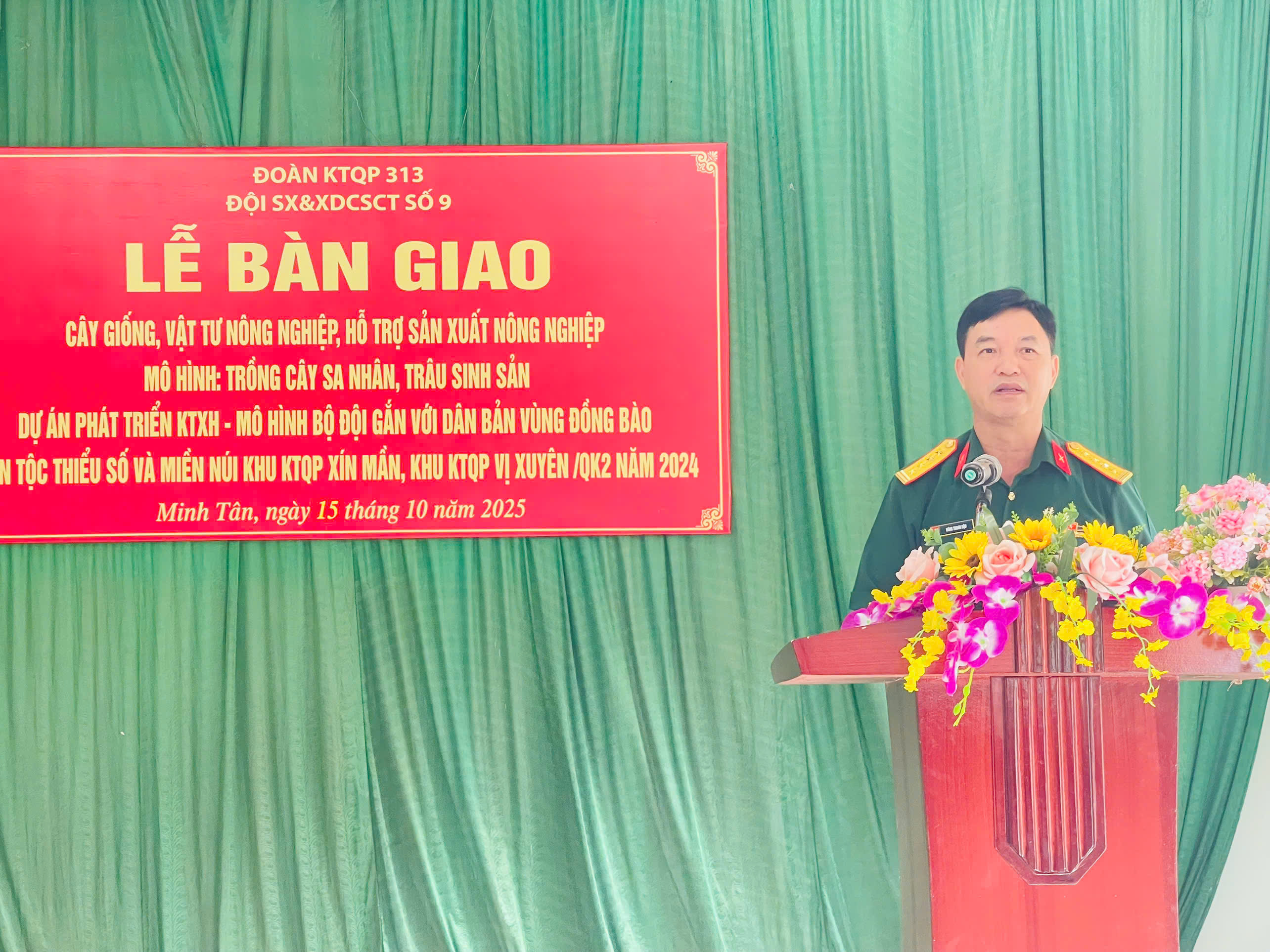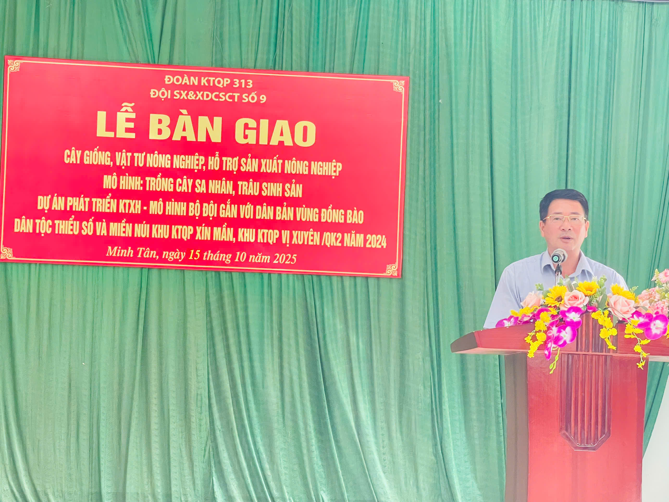 Đại diện địa phương, đồng chí Vi Quang Ngọc – Chủ tịch UBND xã Minh Tân trân trọng cảm ơn sự quan tâm, hỗ trợ của Đoàn Kinh tế - Quốc phòng 313; đồng thời nhấn mạnh chương trình đã góp phần thúc đẩy phát triển kinh tế - xã hội, củng cố quốc phòng – an ninh và tăng cường mối quan hệ gắn bó giữa quân và dân.