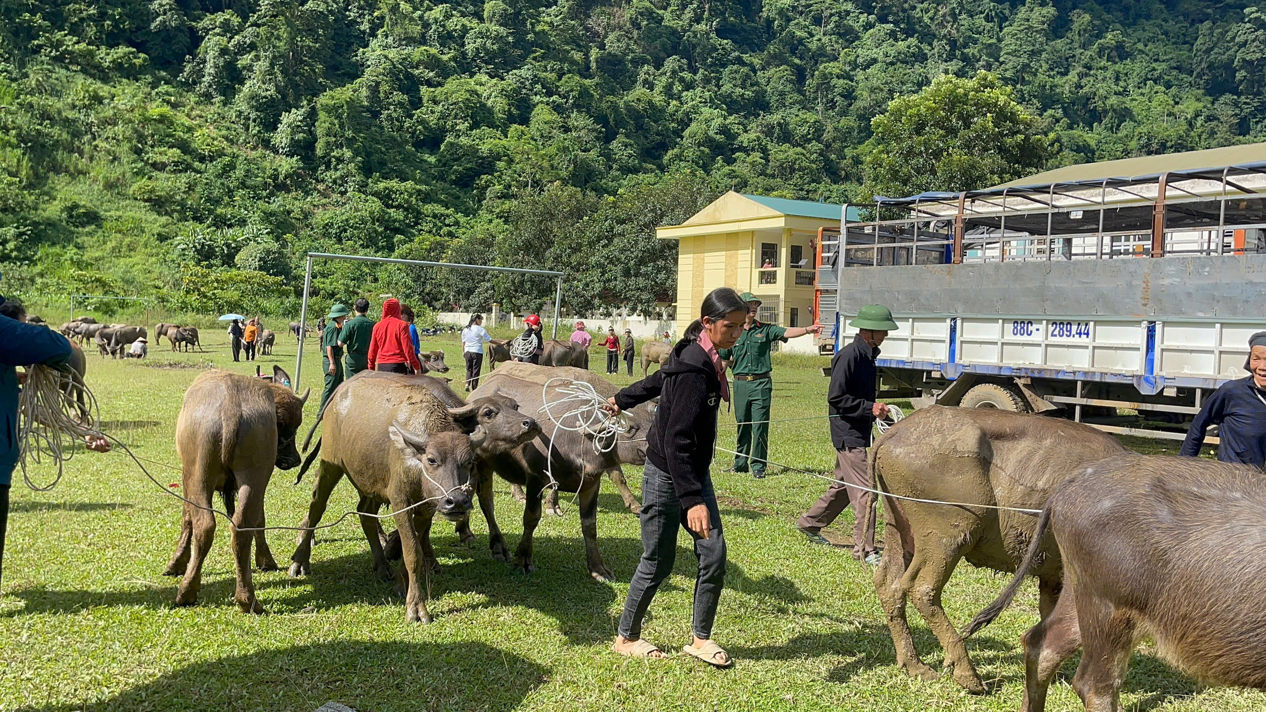 Tại buổi lễ, Đội Sản xuất và Xây dựng cơ sở chính trị số 09 đã bàn giao 80 con trâu sinh sản, 630 kg cám chăn nuôi và 500.000 tiền mặt/hộ cho 40 hộ dân thuộc các thôn Tân Sơn, Bản Phố và Tả Lèng. Đây là hoạt động thiết thực giúp bà con phát triển chăn nuôi, cải thiện sinh kế, góp phần xóa đói giảm nghèo và nâng cao thu nhập.