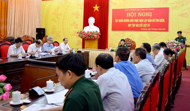 Phát biểu khai mạc Hội nghị, Phó Chủ tịch UBND tỉnh Trần Đức Quý Trưởng Ban Chỉ đạo 1237 tỉnh cho biết: Từ năm 2013 đến nay được sự quan tâm lãnh đạo, chỉ đạo của Tỉnh uỷ- HĐND - UBND; sự phối kết hợp chặt chẽ với các đơn vị quân đội và các địa phương trong cả nước; phát huy truyền thống đạo lý “Uống nước nhớ nguồn” của dân tộc, với tình cảm trách nhiệm cao của cơ quan, đơn vị, địa phương và các tầng lớp nhân dân, thân nhân gia đình liệt sỹ trên địa bàn tỉnh, đến nay công tác tìm kiếm, quy tập hài cốt liệt sỹ trên địa bàn tỉnh đã đạt được những kết quả tích cực… Đây là Hội nghị quan trọng, cần thiết, thể hiện tình cảm trách nhiệm của toàn Đảng bộ, chính quyền, nhân dân các dân tộc và lực lượng vũ trang tỉnh trước anh linh các anh hùng liệt sỹ. Do vậy, đồng chí Phó Chủ tịch UBND tỉnh yêu cầu: Các đại biểu được tập huấn cần nêu cao vai trò, trách nhiệm và triển khai thực hiện lập bản đồ tìm kiếm, quy tập hài cốt liệt sỹ ở địa phương mình một cách nghiêm túc, chặt chẽ, theo đúng quy trình, hướng dẫn của Ban chỉ đạo quốc gia, Ban chỉ đạo tỉnh. Phấn đấu trong năm 2018 có 50% số xã, phường, thị trấn trở lên hoàn thành lập bản đồ tìm kiếm, quy tập hài cốt liệt sỹ; đẩy mạnh thông tin tuyên truyền trên các phương tiện thông tin đại chúng về kết quả công tác tìm kiếm, quy tập hài cốt liệt sỹ, nhằm phát huy tốt vai trò trách nhiệm của các cấp, các ngành và các tầng lớp nhân dân trong việc tham gia lập bản đồ tìm kiếm, thu thập, xác minh, xử lý thông tin, tài liệu về liệt sỹ ở địa phương; rà soát, xác minh kết luận thông tin mộ liệt sỹ hiện đang được an táng tại các nghĩa trang của địa phương và gia đình để làm cơ sở cho việc kết luận địa bàn; tăng cường công tác kiểm tra, theo dõi nắm chắc tình hình việc triển khai thực hiện lập bản đồ tìm kiếm, quy tập hài cốt liệt sỹ để kịp thời giải quyết, tháo gỡ những khó khăn, vướng mắc trong tổ chức thực hiện…
