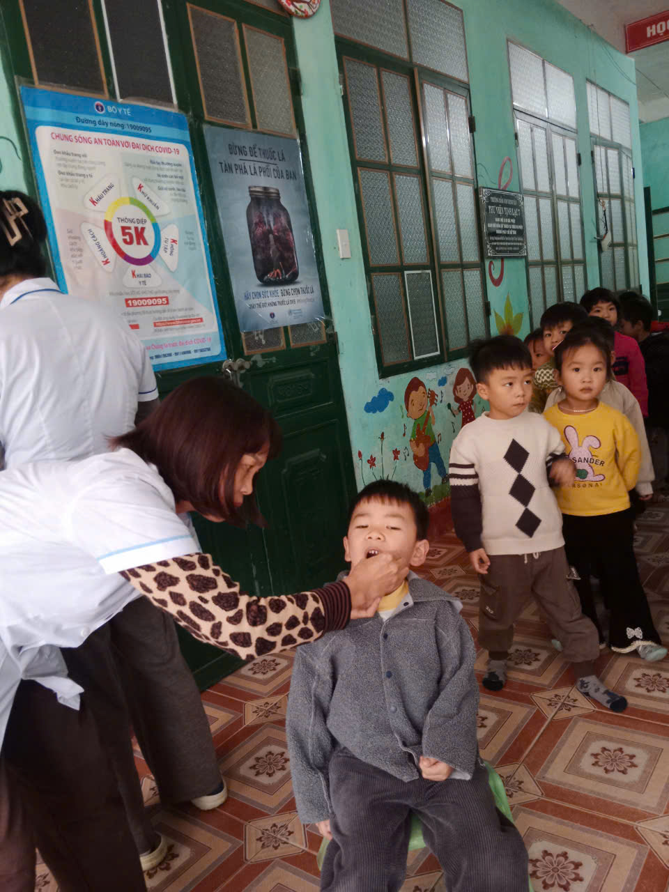 Trong buổi khám, các y bác sĩ đã tiến hành cân, đo, khám sức khỏe tổng quát nhằm theo dõi sự phát triển thể chất của trẻ. Trẻ được uống Vitamin A theo đúng quy định; đồng thời phụ huynh được phát thuốc tẩy giun để mang về cho trẻ sử dụng tại nhà.