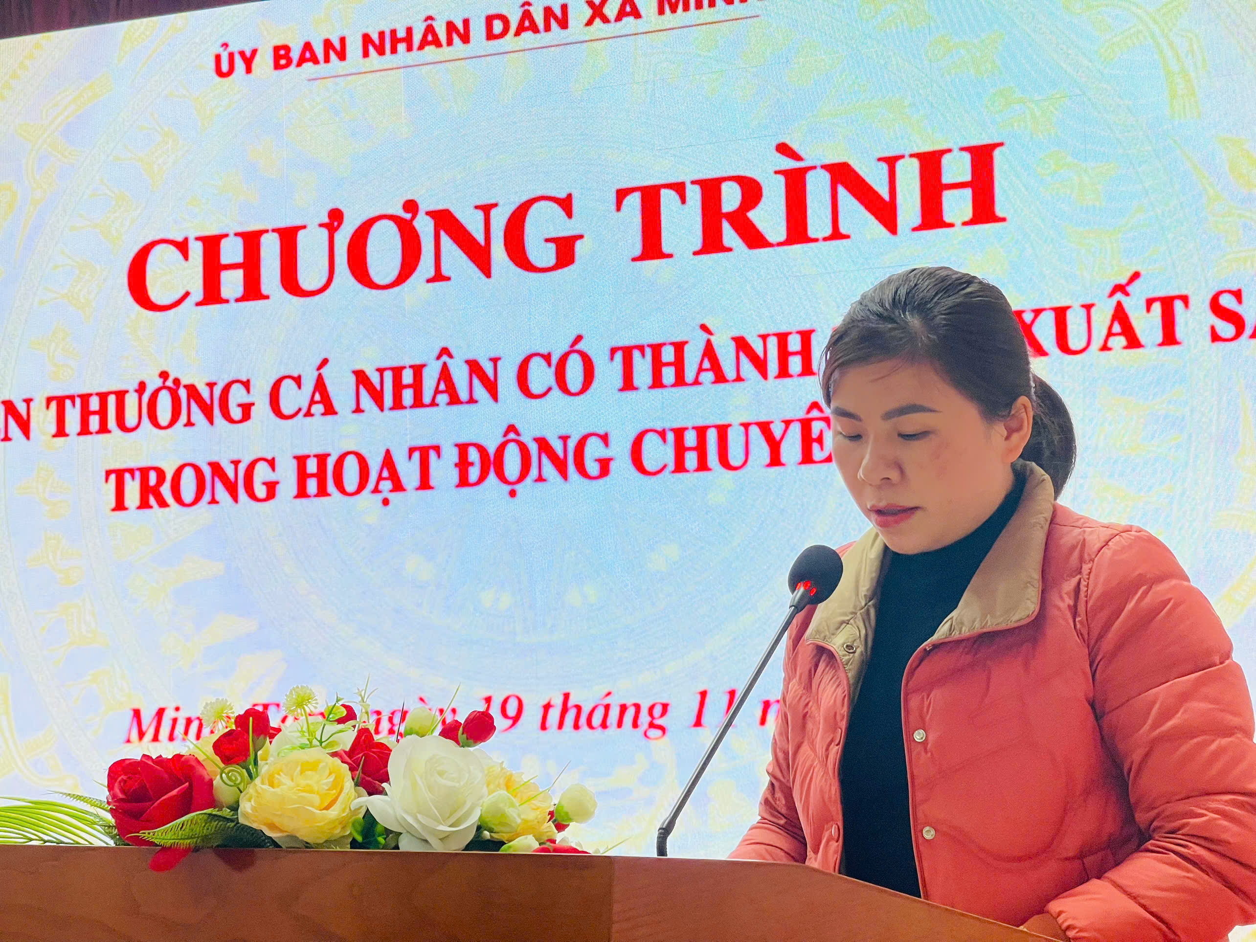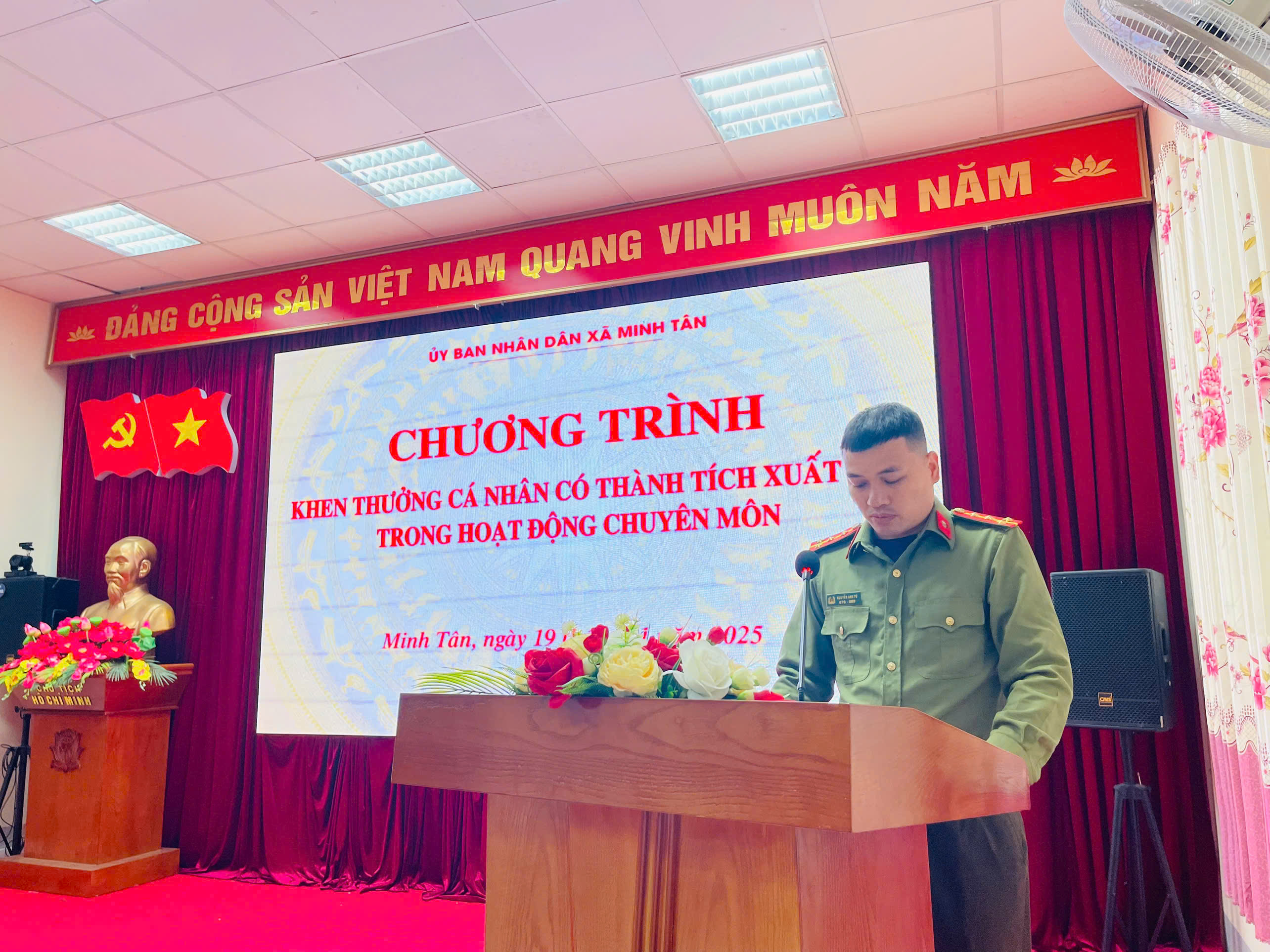 Tại chương trình, lãnh đạo Phòng Văn hóa – Xã hội công bố quyết định khen thưởng; Chủ tịch UBND xã Minh Tân tiến hành trao thưởng cho cá nhân đạt thành tích xuất sắc trong thời gian qua.