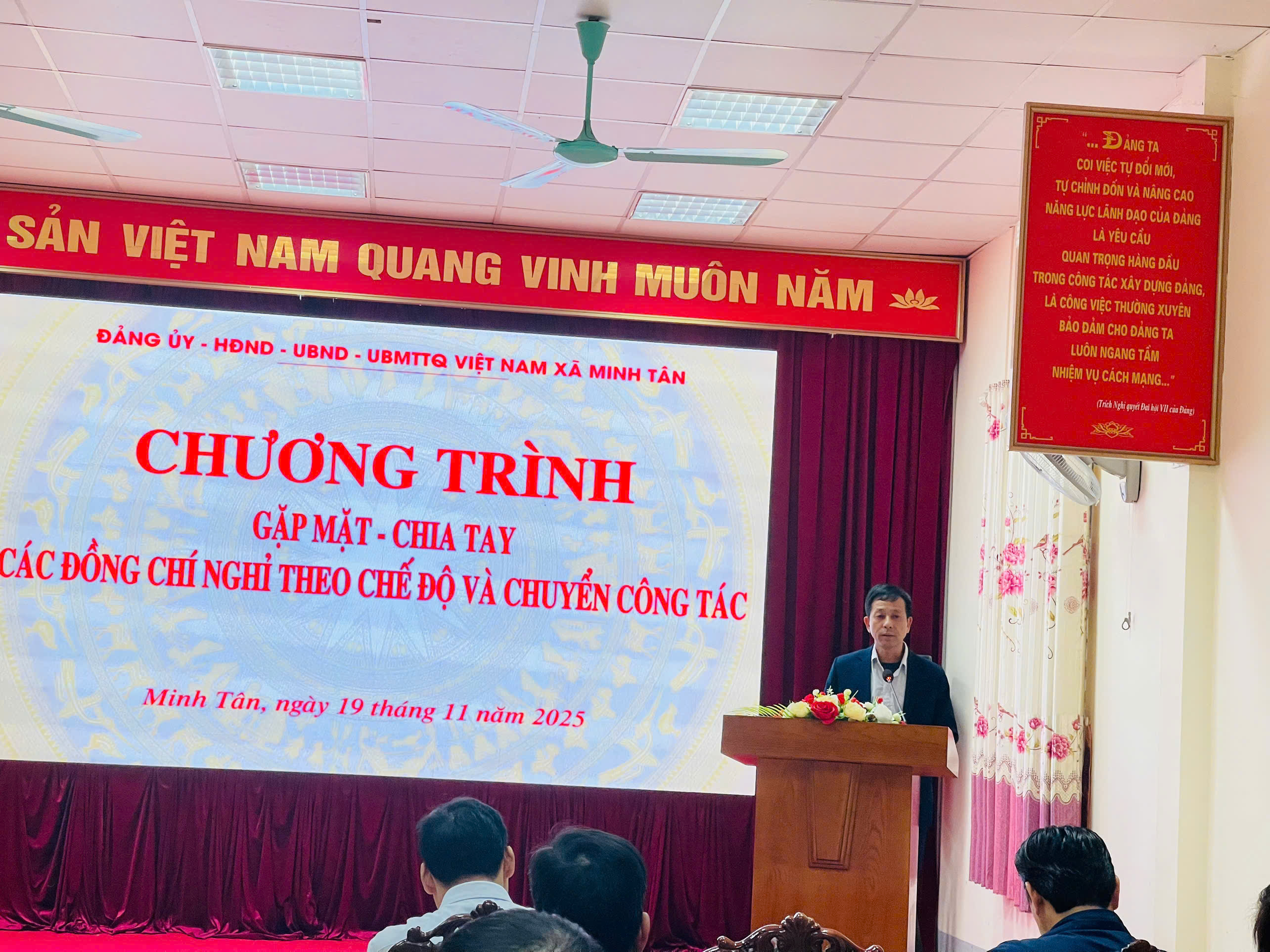 Phát biểu tại buổi lễ, đồng chí Vị Quang Ngọc – Phó Bí thư Đảng ủy, Chủ tịch UBND xã ghi nhận, biểu dương những nỗ lực, đóng góp của cá nhân được khen thưởng; đồng thời bày tỏ sự tri ân đối với các đồng chí nghỉ chế độ,chuyển công tác những người đã cống hiến nhiều năm cho sự phát triển của xã Minh Tân.