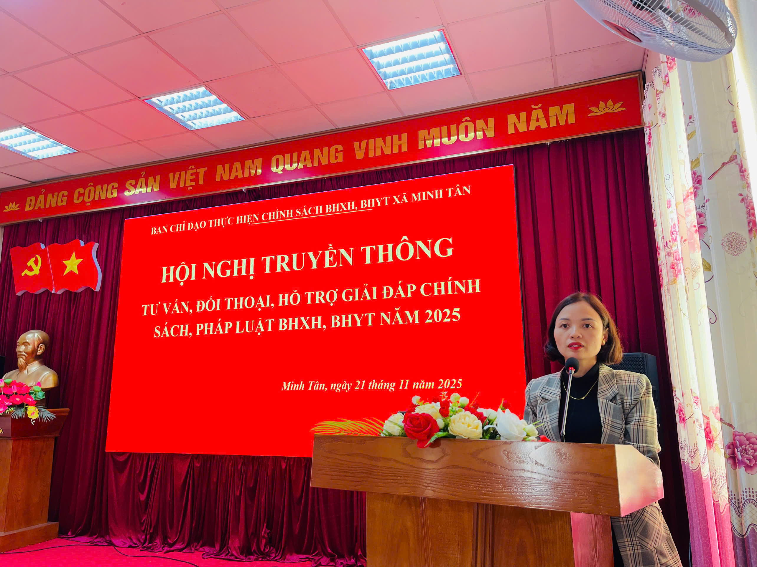Hội nghị là dịp quan trọng để nâng cao nhận thức của cán bộ và nhân dân về vai trò, ý nghĩa của BHXH, BHYT; đồng thời góp phần hoàn thành chỉ tiêu phát triển người tham gia BHXH, BHYT năm 2025 trên địa bàn xã Minh Tân.